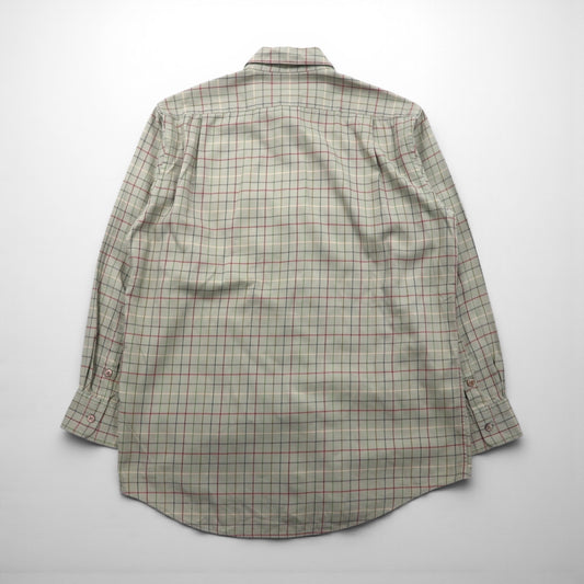 BURBERRY 90年代 長袖シャツ M ベージュ コットン チェック 胸ポケット ワンポイントロゴ 刺繍