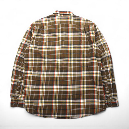 Eddie Bauer ボタンダウン フランネルシャツ L ブラウン チェック RELAXED FIT 胸ポケット 7709
