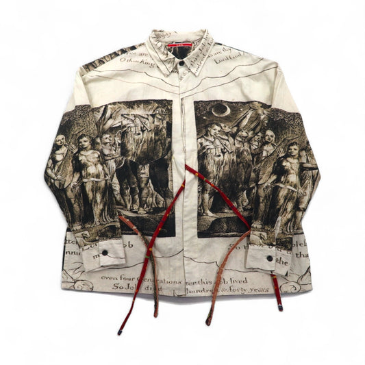 Leh 羽織 シャツ L ベージュ 総柄 インド綿 アート グラフィック 945
