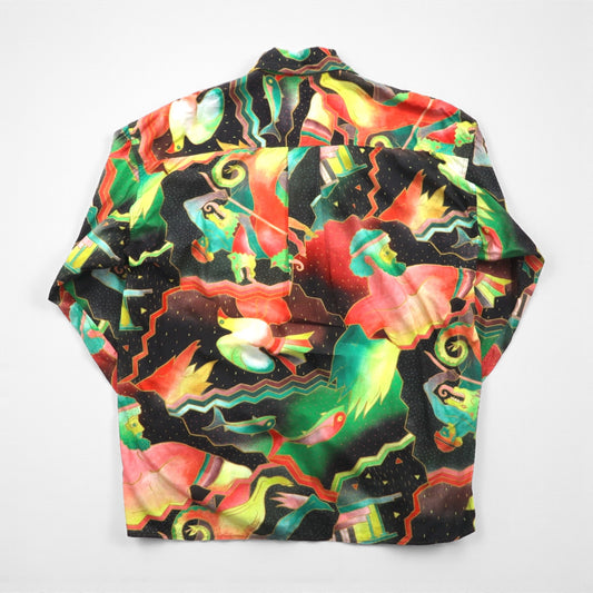 VERSACE 80年代 イタリア製 シャツ S マルチカラー 総柄 アート 比翼 VERSACE JEANS COUTURE