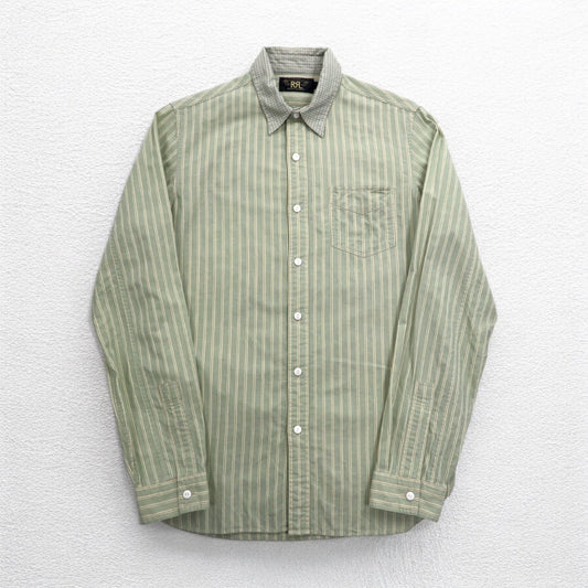 RRL DOUBLE RL RALPH LAUREN クレリックシャツ S グリーン ストライプ チンストラップ