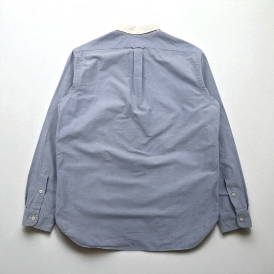 BURBERRY イギリス製 オックスフォード ボタンダウンシャツ M ブルー ノバチェック切替 ワンポイントロゴ刺繍