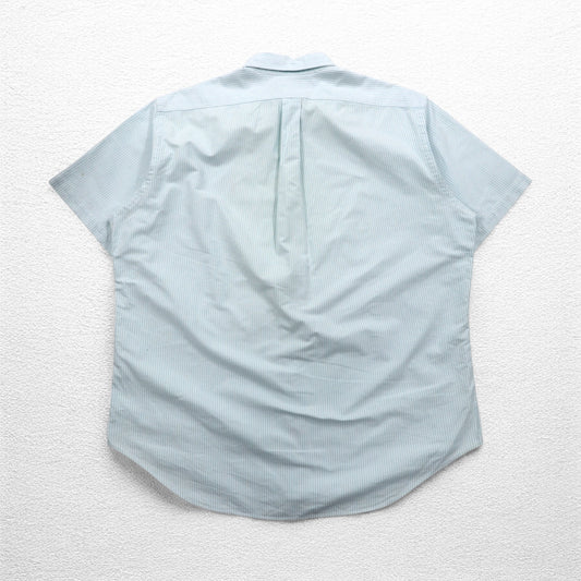 Ralph Lauren 90年代 クラシックフィット 半袖 オックスフォード ボタンダウンシャツ XL ホワイト ブルー ストライプ スモールポニー刺繍