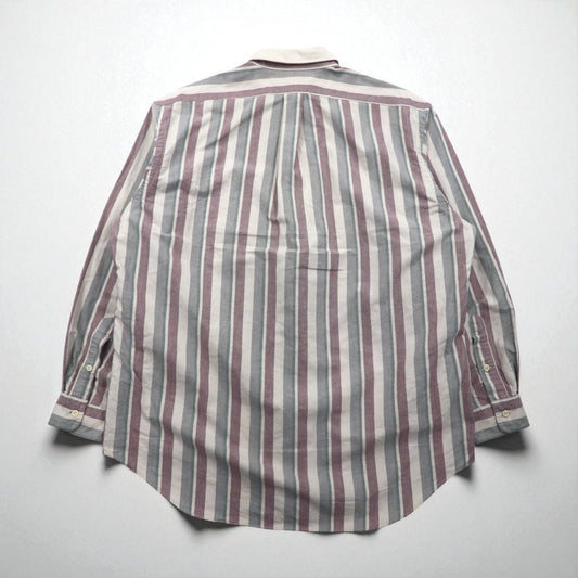 Polo Ralph Lauren 90年代 クレリックシャツ L グレー ストライプ 胸ポケット ワッペン エンブレム