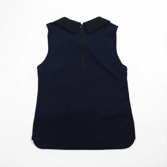 MIHARA YASUHIRO 襟付き ノースリーブ ブラウス L ネイビー コットン ストレッチ 日本製
