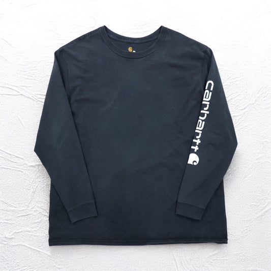 carhartt ロングスリーブ Tシャツ ロンT 4XL ネイビー 袖 プリント ロゴ ビッグサイズ