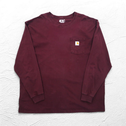 carhartt ロングスリーブ ポケット Tシャツ ロンT 3XL ボルドー ビッグサイズ ホンジュラス戦