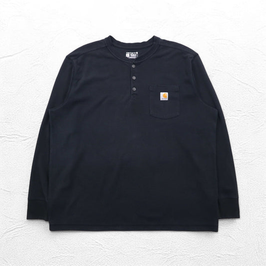 Carhartt ヘビーウェイト ロングスリーブ サーマル ヘンリーネック ロンT 2XL RELAXED FIT ブラック 104429 TK4429