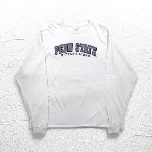 Champion カレッジプリント ロングスリーブ Tシャツ ロンT 4XL ホワイト PENN STATE ビッグサイズ ニカラグア製