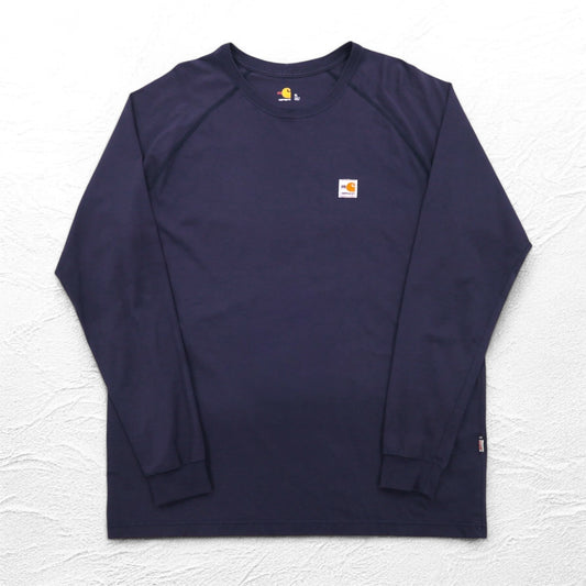 carhartt FORCE 難燃 FR ロングスリーブ Tシャツ ロンT XL ネイビー ストレッチ 102904-410 メキシコ製