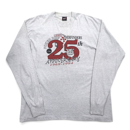 USA製 90年代 FRUIT OF THE LOOM ロングスリーブTシャツ ロンT XXL グレー PORKER RUN ビッグサイズ