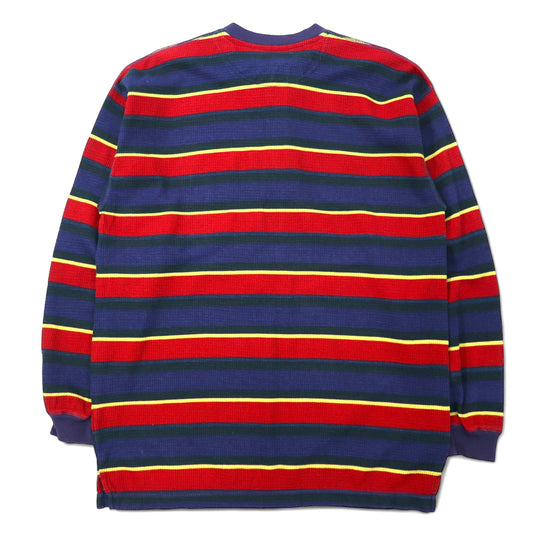 90年代 Duck Head サーマル ヘンリーネック ロングスリーブ Tシャツ ロンT M ネイビー レッド ボーダー コットン ワンポイントロゴ 刺繍