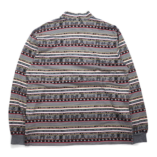 CASTELBAJAC +2 NATURE 90年代 ハーフジップ ロングスリーブシャツ ロンT XXL グレー コットン 総柄 日本製