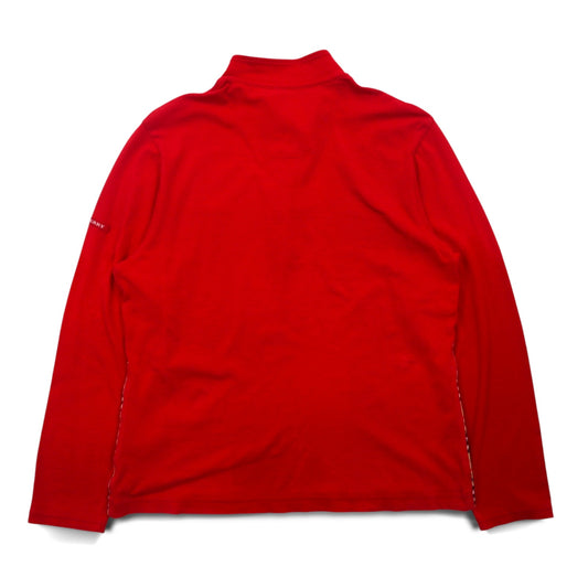 TOMMY HILFIGER ハーフジップ ロングスリーブTシャツ ロンT M レッド ワンポイントロゴ刺繍