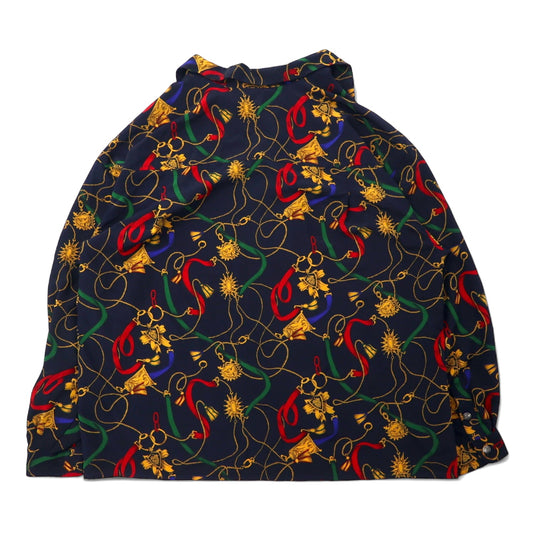 80年代 CHAUS WOMAN レトロ オープンカラー シャツ ブラウス 18W ネイビー ポリエステル 総柄