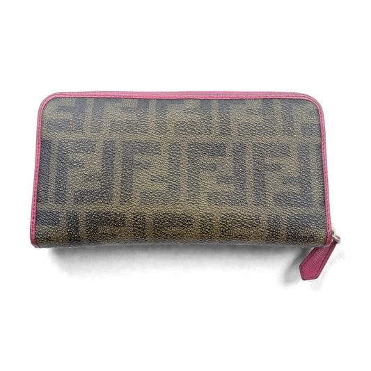 FENDI ラウンドファスナー 長財布 ズッカ柄 カーキ ピンク PVC 8M0299 イタリア製