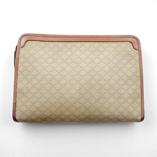 CELINE セカンドバッグ ポーチ ブラウン レザー マカダム柄 オールド DM91 イタリア製