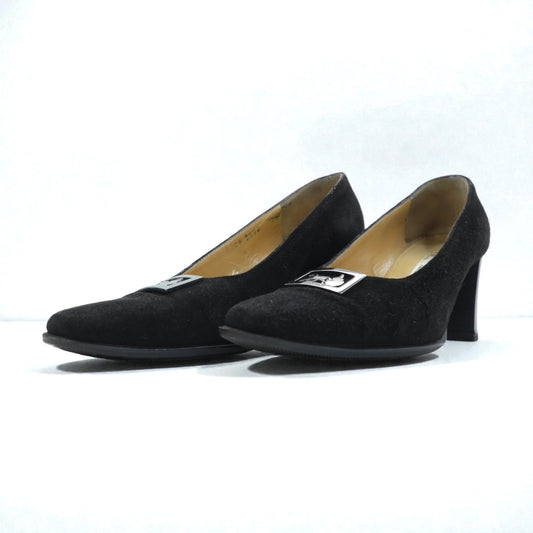 CELINE チャンキーヒールパンプス 22.5cm ブラック スエードレザー ハイヒール オールド イタリア製