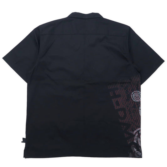 HARLEY DAVIDSON 半袖 オープンカラー ワークシャツ XL ブラック コットン ロゴプリント ビッグサイズ