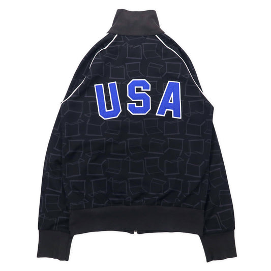 adidas originals 00年代 トラックジャケット ジャージ M ブラック ポリエステル USAワッペン 総柄 3ストライプ トレフォイルロゴ刺繍