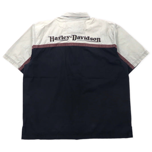 HARLEY DAVIDSON 半袖 ワークシャツ XL ブラック コットン ロゴ刺繍