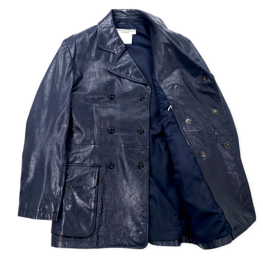 KATHARINE HAMNETT LONDON 90年代 ダブルブレスト レザーコート M ネイビー ゴートスキン 山羊革
