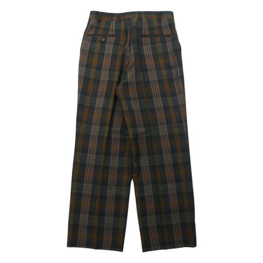 DELGEN 70年代 ツータック チェック スラックスパンツ 76 グリーン ポリエステル ウール