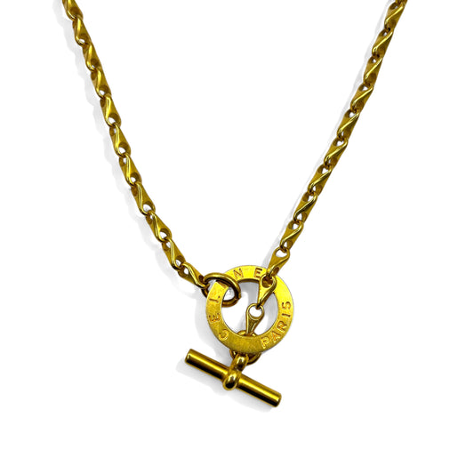 CELINE 80年代 イタリア製 ヴィンテージ 2WAY チェーンベルト ネックレス サークルロゴ トグル ゴールド メタル