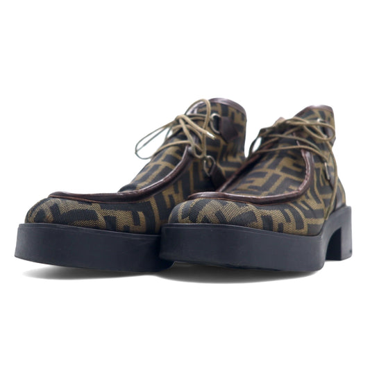FENDI イタリア製 ズッカ柄 ショートブーツ ブーティー 23cm ブラウン ブラック SCARPE キャンバス