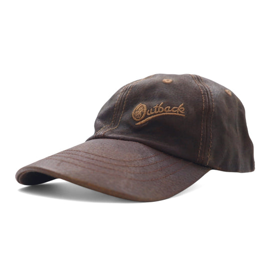 OUTBACK 90年代 オイルド レザー ベースボールキャップ ONE ブラウン ロゴ 刺繍