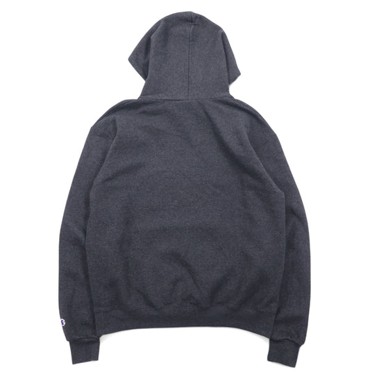 CHAMPION ECO FLEECE カレッジプリント プルオーバー パーカー M グレー コットン AKRON アーチロゴ 裏起毛