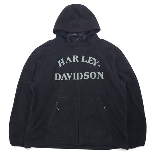 HARLEY DAVIDSON フリースジャケット パーカー XL ブラック ポリエステル スカル プリント リフレクター
