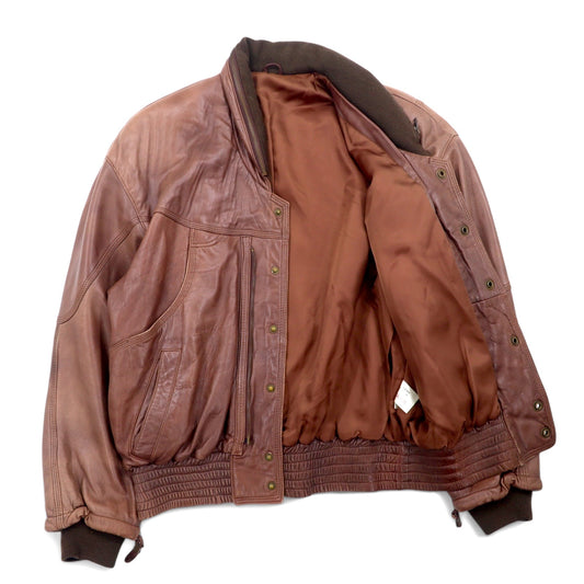 Lambskin Bomber Jacket 90年代 ボンバージャケット ラムレザー フライトジャケット L ブラウン 羊革 フード収納式