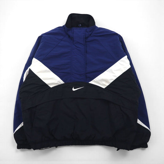 NIKE 90年代 銀タグ ハーフジップ アノラックジャケット ナイロン ジャージ XL 中綿 カンガルーポケット 短丈 ドローコード