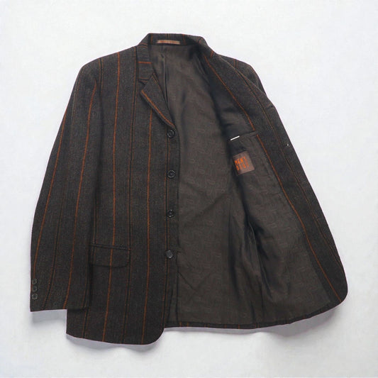 MEN'S BIGI 80s Vintage Blazer ツイード テーラードジャケット M ブラウン ストライプ ウール 裏地 ペイズリー柄 80年代