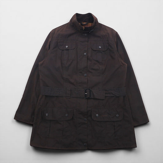 Barbour Utility Mac Oiled Jacket, Made in England, Size XL, Brown, Corduroy Collar, Belted, L1502