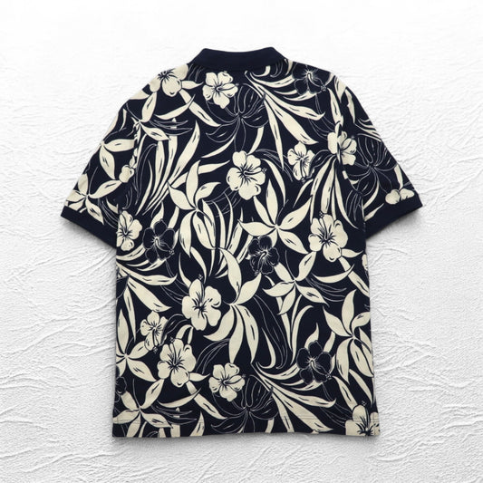 NAUTICA Polo Shirt XL Navy Cotton All-over Pattern Hibiscus Flower Big Size