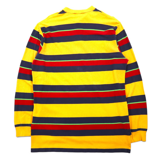 Polo by Ralph Lauren 90s Long Sleeve Polo Rugby Shirt XL Yellow Border Cotton Small Pony Embroidery Made in Bolivia