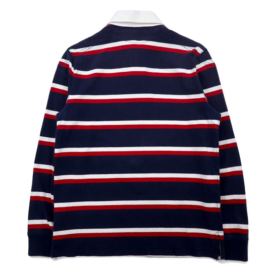 TOMMY HILFIGER Rugby Shirt L Navy Red Border Cotton One Point Logo Embroidery