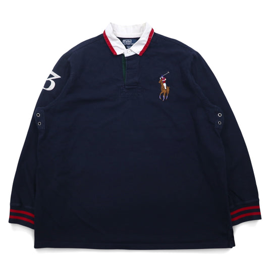 Polo by Ralph Lauren 90s Big Pony Embroidered Rugby Shirt XXL Navy Numbering Elbow Patch Made in Sri Lanka