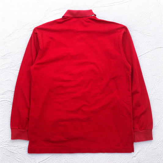 Polo by Ralph Lauren 90s Long Sleeve Polo Shirt L Red Pima Cotton Piqué Small Pony Embroidery Made in Peru