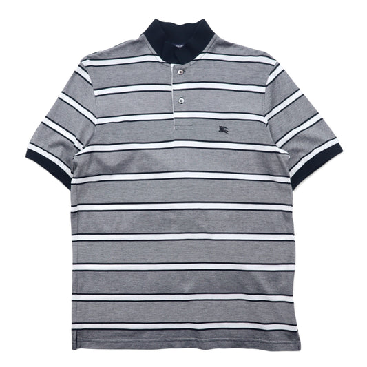 BURBERRY LONDON Striped Polo Shirt L Grey Cotton Logo Embroidery BBV98-508-09 Made in Japan