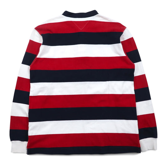 TOMMY HILFIGER Band Collar Rugby Shirt M Tricolor Border Henley Neck