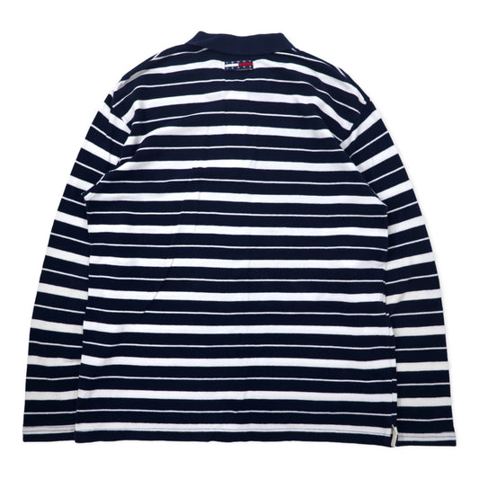 TOMMY JEANS 90s Striped Rugby Shirt Polo Shirt Long Sleeve L Navy Cotton