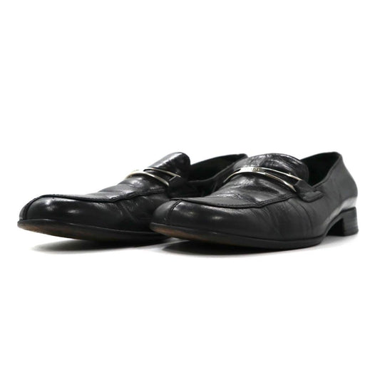 PRADA loafers 23cm black V-tip leather logo plate made in Italy