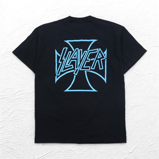 SLAYER Band T-Shirt L Black Cotton Double-sided Print Skull FRUIT OF THE LOOM Made in Morocco