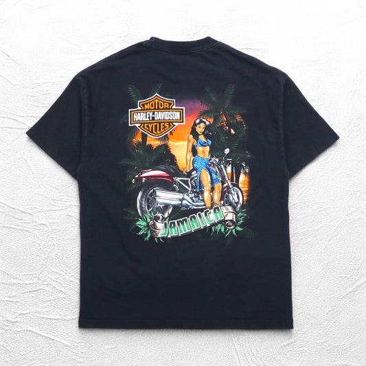 HARLEY DAVIDSON JAMAICA Back Print T-Shirt XL Black Pin-up Girl