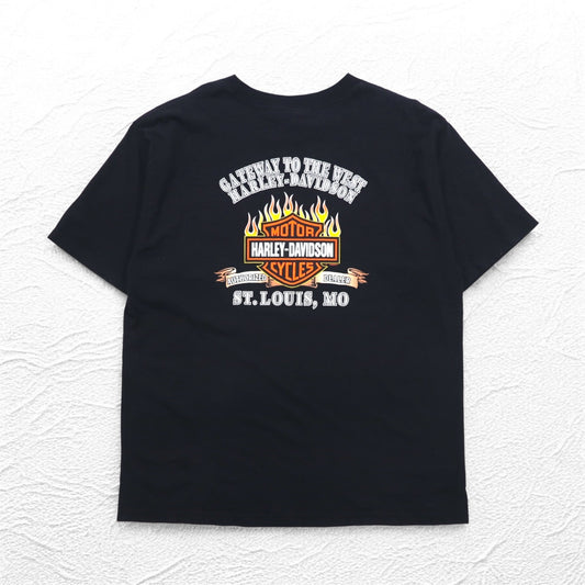 HARLEY DAVIDSON 00s Made in USA Blue Fire Pattern Double-Sided Print T-Shirt 2XL Black SOMERSET Big Size