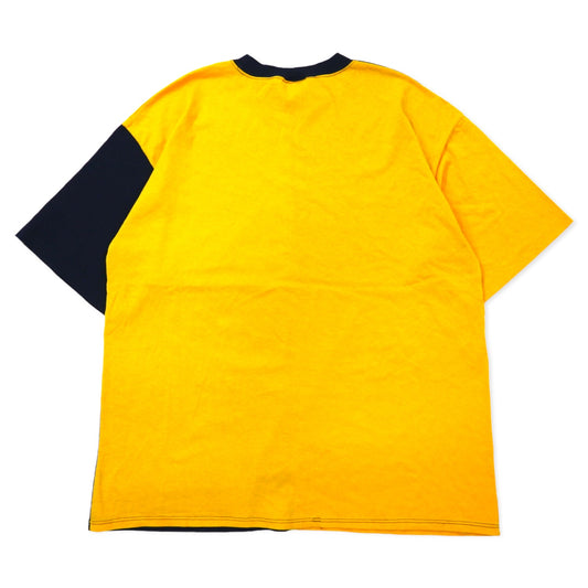 Made in USA 90s WOLF Baseball Print T-Shirt XL Yellow Navy Cotton MIDLAND BASEBALL Big Size