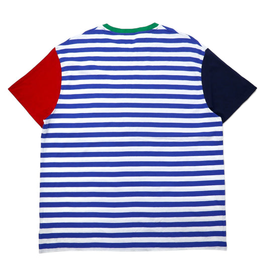 POLO RALPH LAUREN Classic Fit Striped T-Shirt Pocket Tee XL Blue White Cotton Color Block Small Pony Embroidery